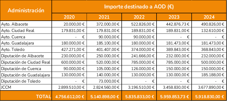 Tabla 2. Evolución de la AOD autonómica y local en Castilla-La Mancha (2020-2024)