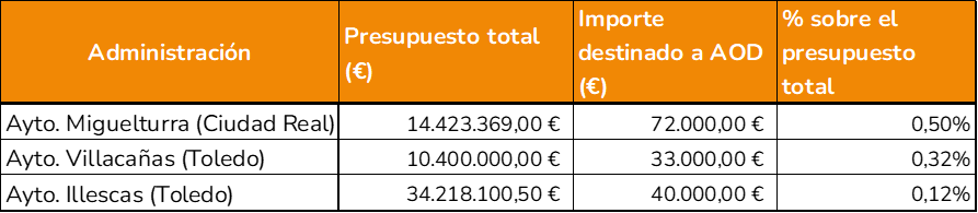 Tabla 4. Otros municipios de Castilla-La Mancha: ejemplos de buenas prácticas en AOD 2024