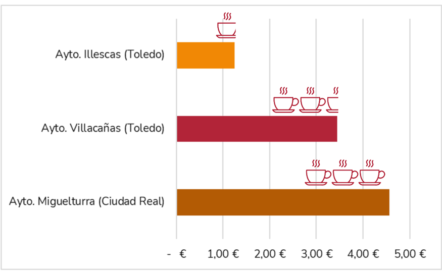 2 Precio medio estimado de un café en cafeterías urbanas, calculado a 1,50 €