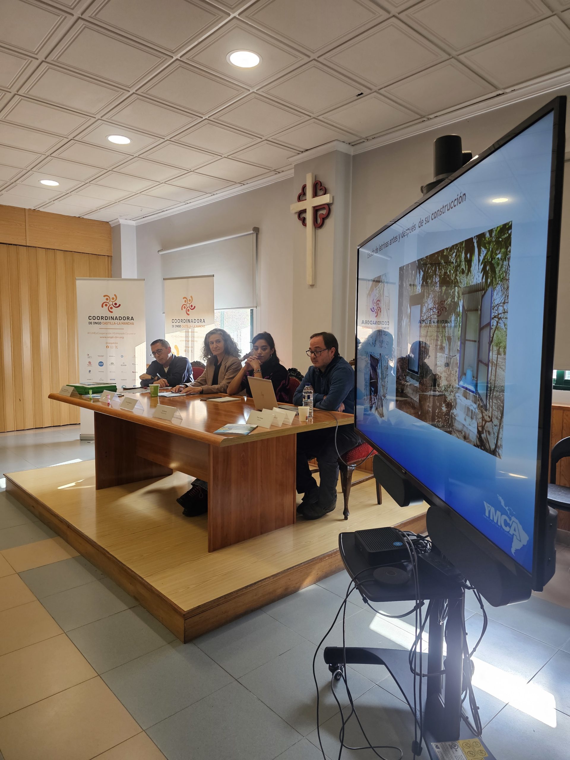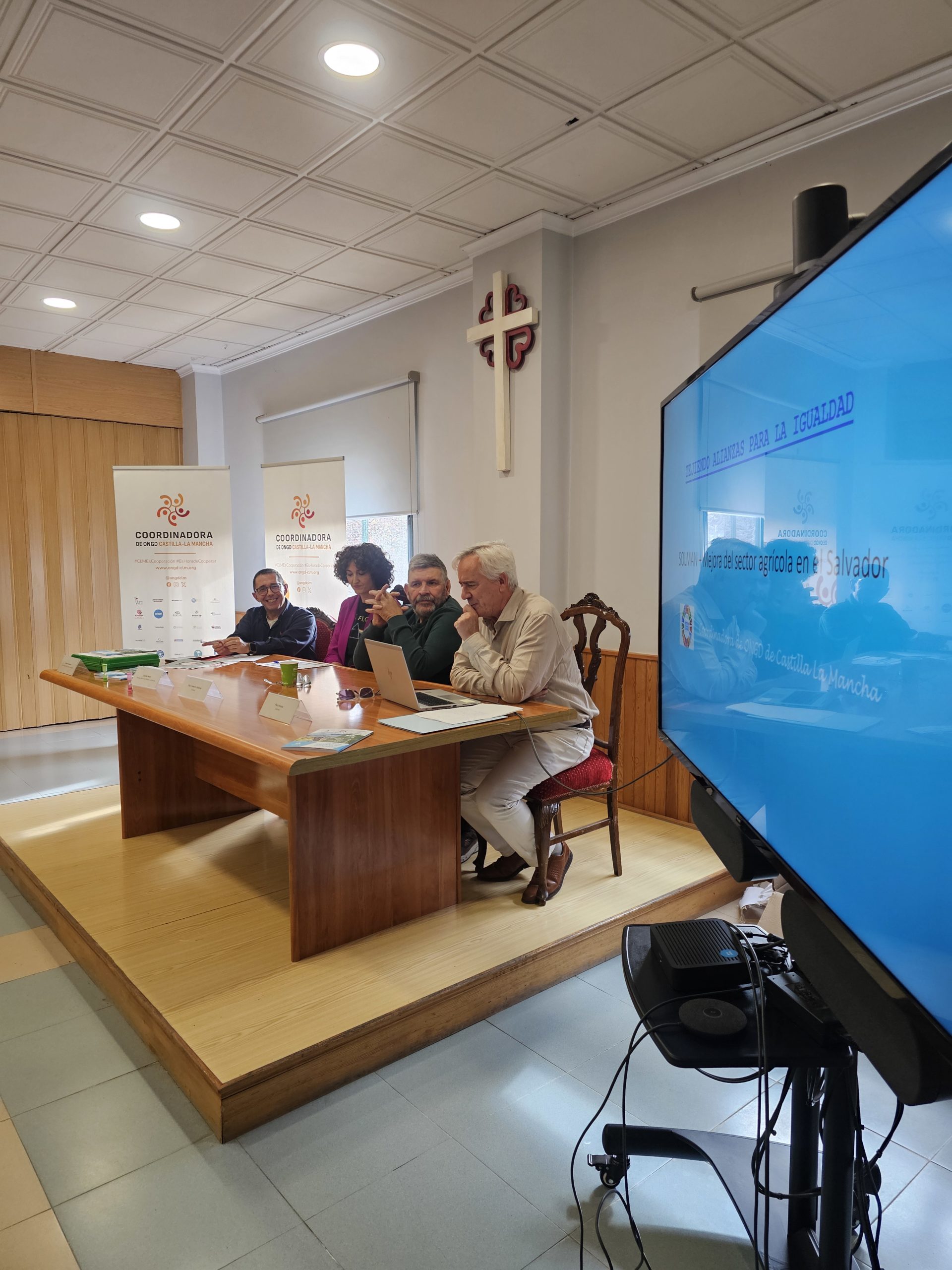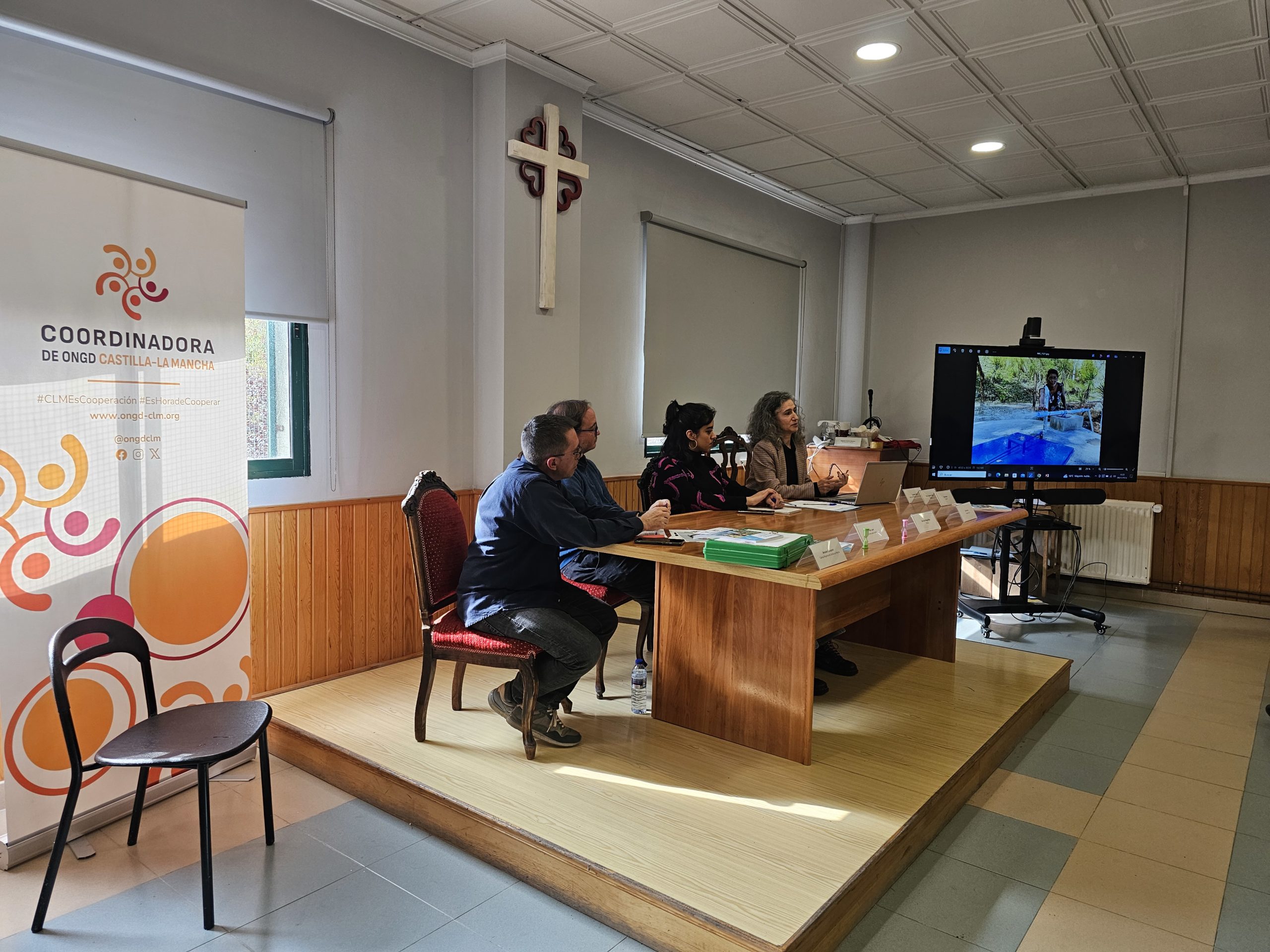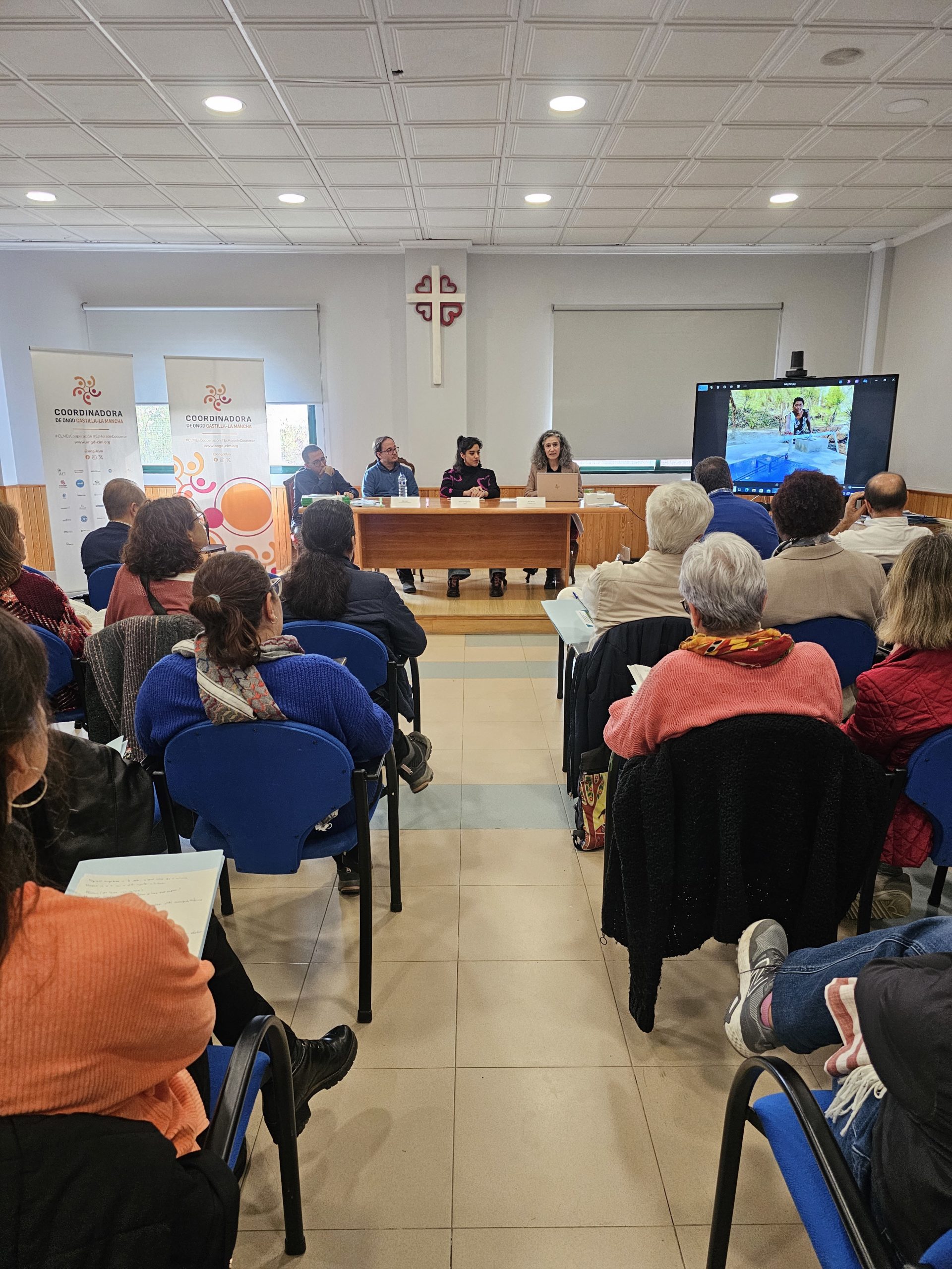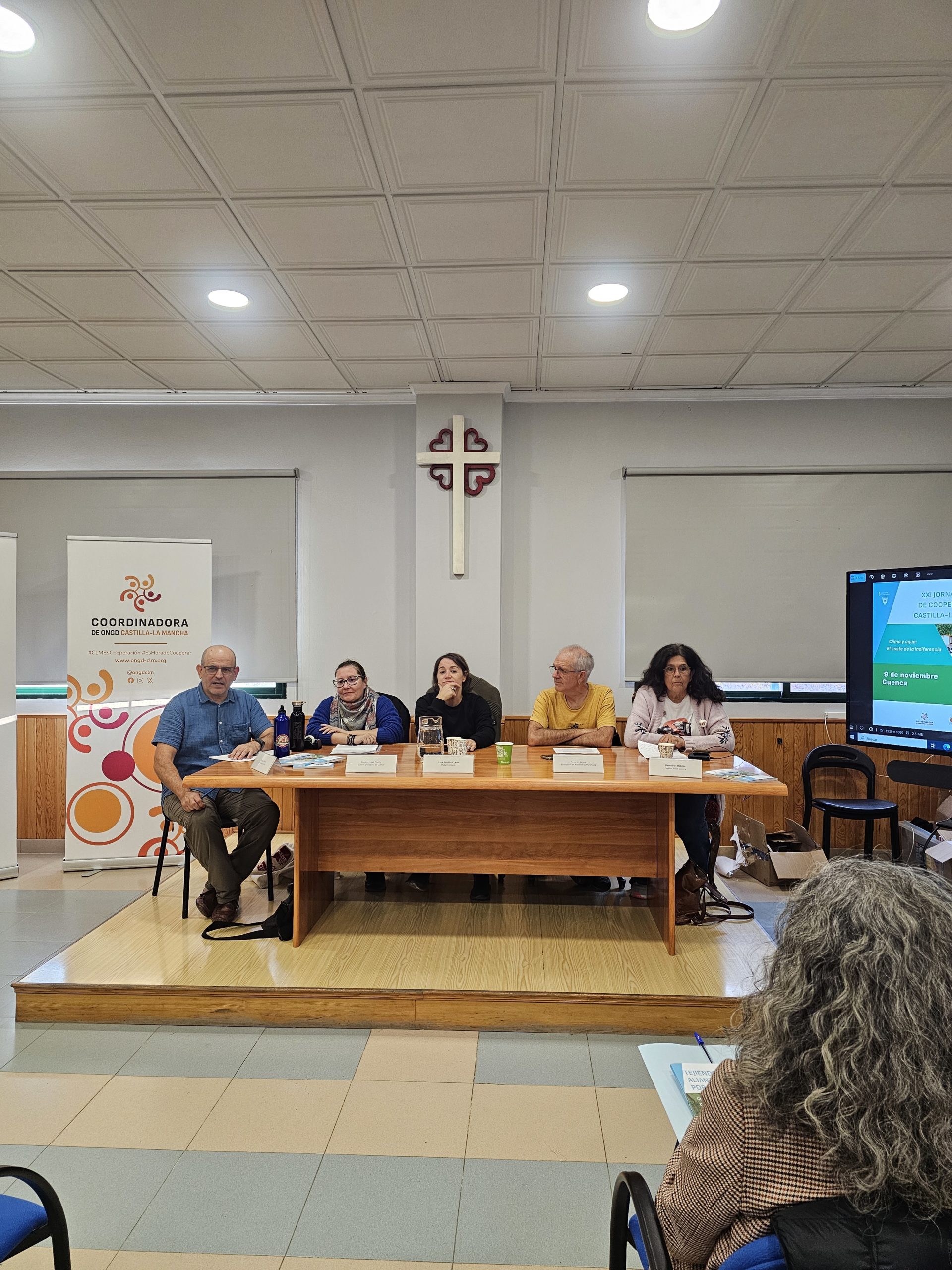 Tras un breve descanso retomamos con la presentación del libro Tejiendo Alianzas por el Clima y el Derecho al Agua, Caminando hacia el 2030 resultado del proyecto Tejiendo Alianzas para la Igualdad en colaboración con el programa Solidarios de Castilla-La Mancha Media (CCM) en la que varias de las organizaciones socias de la Coordinadora de ONGD de CLM participantes de los podcast formaron parte de la Mesa Coloquio. Eva Macías de Fundación Kirira, Gerardo Magariños de YMCA, Mar Loro de Escuelas para el Mundo, Paco Matas de Solman, Paco Calderón Sánchez de Sodepaz y Lourdes Nieto de Médicos del Mundo Castilla-La Mancha moderadas por Amador Casquero de Cáritas, presentaron sus experiencias de Cooperación al Desarrollo y Educación para la Ciudadanía Global.